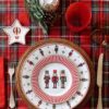 La figura dello Schiaccianoci, il celebre soldatino di Natale, diventa protagonista di questo servizio da tavola natalizio.