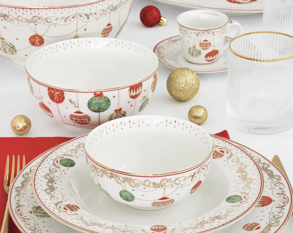 A porcelain collection adorned with golden details and festive designs. Plates, cups, and matching accessories turn your table into the perfect setting to share the joy of Christmas. Discover the Christmas Eve collection and experience the magic of the Holidays with Easy Life.