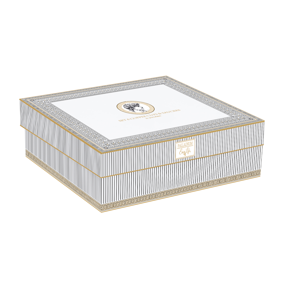 La collection Palladium apporte à votre table une élégance classique avec des porcelaines décorées de motifs géométriques raffinés et de détails dorés. Parfaite pour une table alliant design contemporain et tradition.