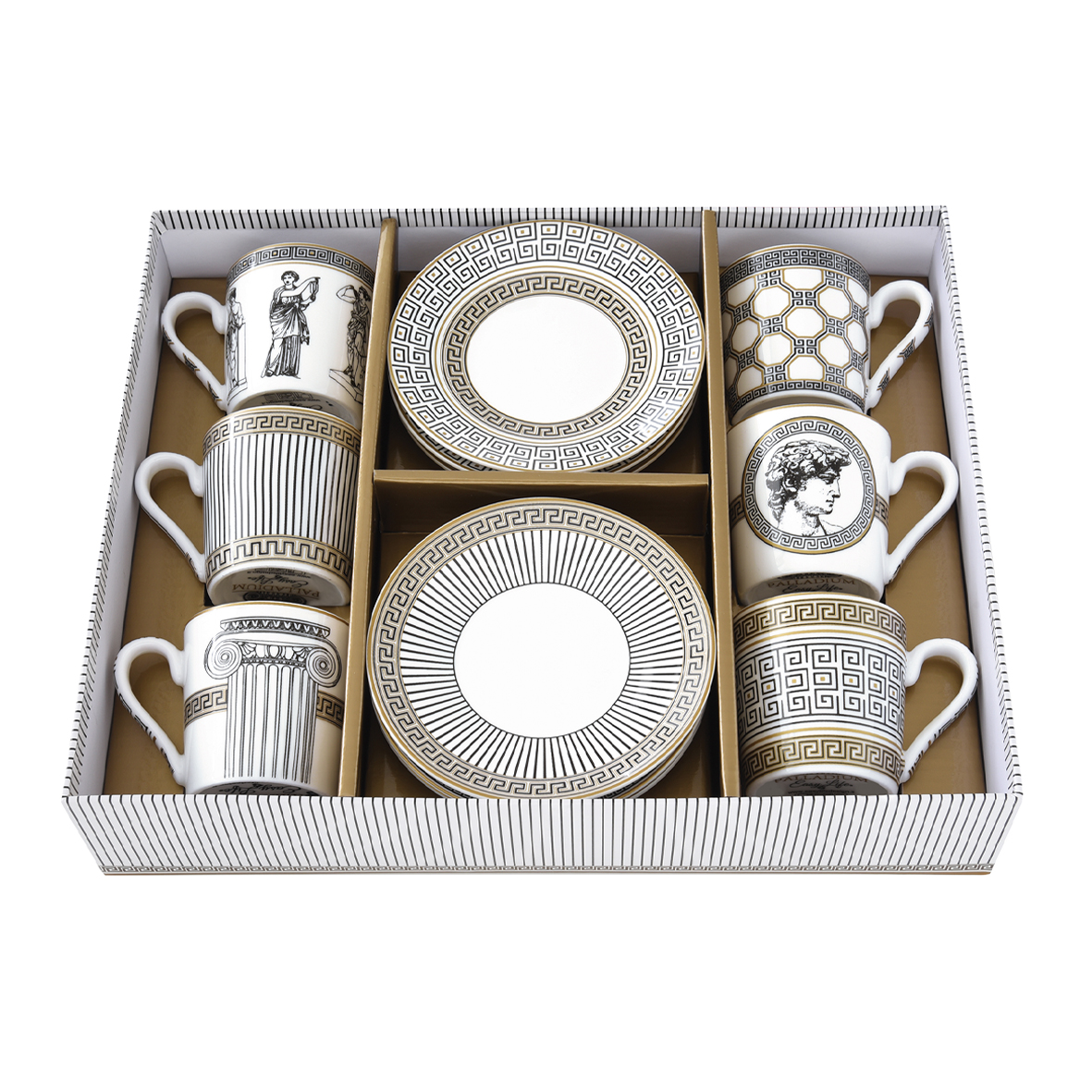 Set de 6 tasses à espresso en porcelaine décorées dans un style classique — une touche d’élégance intemporelle pour votre table.