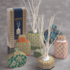 Diffusore di fragranza per l’ambiente, in porcellana da 400 ml con bastoncini in legno di salice in color box. Non è disponibile il profumo. AMBIANCE TAJ MAHAL GREEN